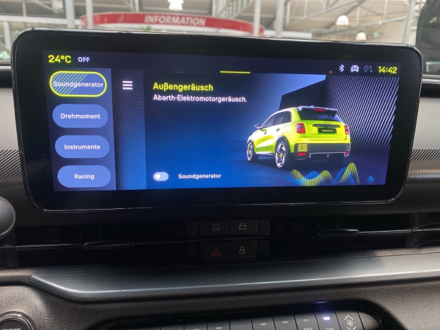 Abarth 600e Scorpionissima Racing-Sitze Sound Generator Abarth Fahrmodi Sitzhzg.